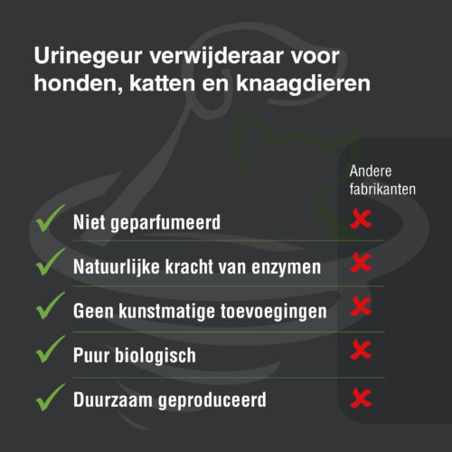 We hebben twee Russian Blue katertjes waar we dol,op,zijn, nu zo’n 4 jaar. Toen ze 1 werden begonnen ze met sproeien, en iedere katteneigenaar weet wat voor penetrante geur dat is! Beide werden gecastreerd maar 1tje bleef plasjes doen geregeld (terrein afbakenen) waardoor ons huis langzaam naar een kattenbak begon te ruiken. Alles hadden we al geprobeerd maar steeds kwam de lucht terug. Zelf mijn man zijn dure winterjas (schippersjas/vilt stof) bleef niet bespaard. Bij de drogist geprobeerd (dry clean) te laten reinigen a €40, maar zonder resultaat. Toen op deze site terecht gekomen, en meteen een fles besteld….en het werkt!!!! Niet alleen werd eindelijk de geur weggenomen, ook ons katertje lijkt het opgegeven te hebben